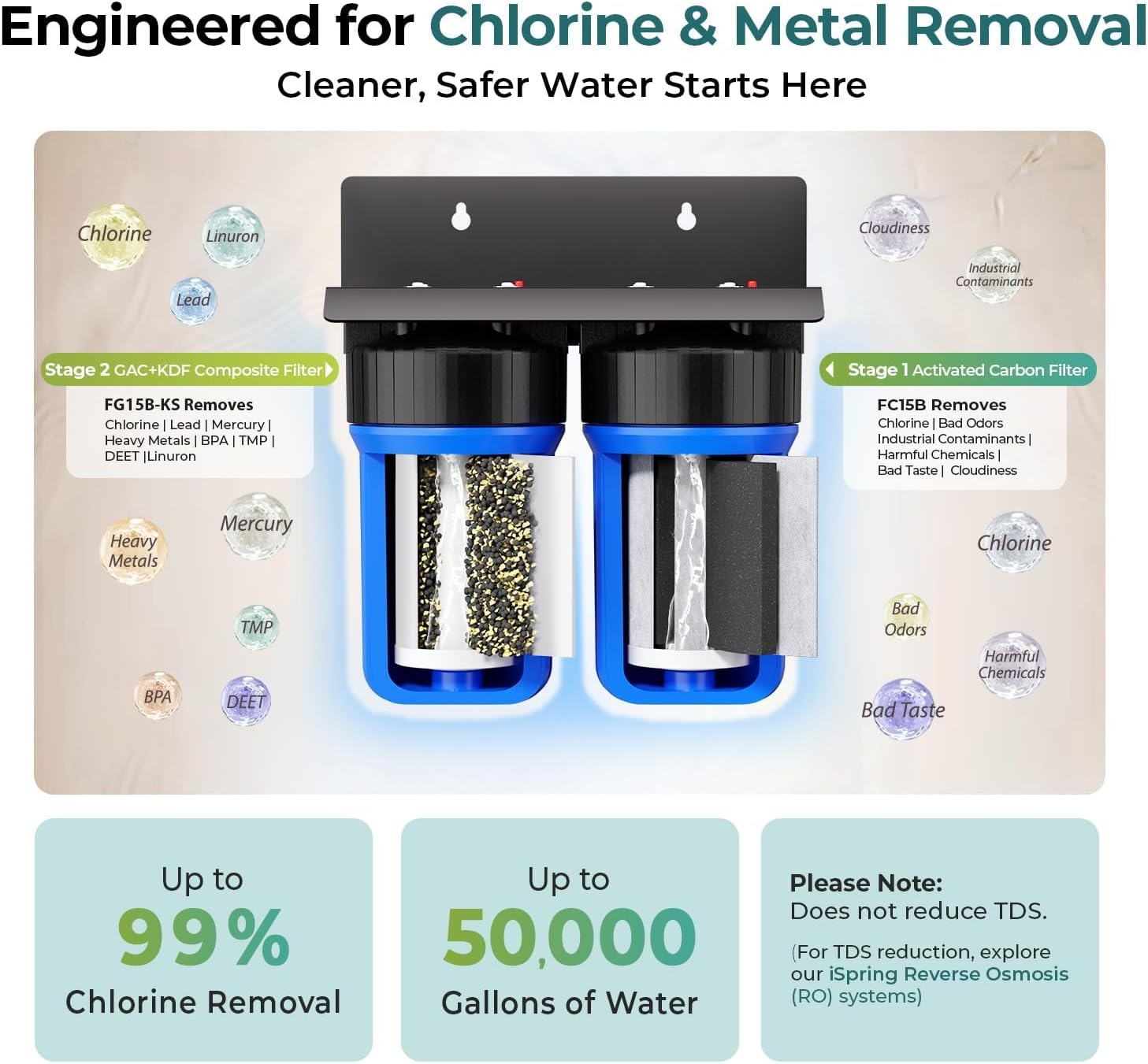 iSpring WCB32C-GAC Whole House Water Filter System, Reduces Chloramine, PFAS, Chlorine, Sediments