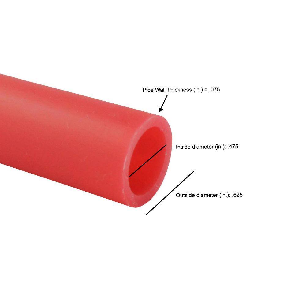 Apollo EPPR30012S 1/2 in. x 300 ft. Red PEX-A Expansion Pipe in Solid Apollo ExpansionPEX is cross-linked polyethylene tubing designed for use within potable water piping systems. Produced using a Peroxide method, Apollo ExpansionPEX is PEX-A pipe. Having been in use for over 50 years PEX-A pipe has the highest rate of cross-linking of any PEX pipe. Apollo ExpansionPEX is the most flexible PEX pipe available. Apollo ExpansionPEX Pipe provides superior durability, corrosion resistance and flexibility for the most demanding environments. Apollo ExpansionPEX is available in red, white and blue for the simple identification of cold water, hot water and main water lines. The Apollo ExpansionPEX system is a comprehensive cold expansion piping system comprised of brass fittings, poly alloy fittings, manifolds, valves, fasteners, tools and tubing designed for implementation in water delivery systems, simple or complex. Pipe is red in color for easy identification of hot water distribution lines within a piping system Apollo ExpansionPEX pipe is compatible with both expansion and crimp, clamp or sleeve methods of joining Compatible with Tectite by Apollo push-to-connect fittings Meets or exceeds the following standards: ASTM F876, F877, F1807, F1960, F2023, F2080 and F2159 Heat-reparable if kinked during installation thus further eliminating additional repair connections Shape memory inherent in PEX-a tubing results in the shrinking of expanded pipe to normal size, creating strong, durable and reliable ASTM F1960 fitting connections Maximum cross-linking increases flexibility and resistance to cracking Available in a variety of lengths including 100 ft. and 300 ft. coils Compatible with Uponor and Wirsbo PEX piping systems Apollo expansion PEX (PEX-A) has less coil memory than traditional PEX pipe and resists the urge to remain coiled Maximum Pressures & Temperatures: 160 psi @ 73.4° F, 100 psi @ 180° F, 80 psi @ 200° F The pipe may be installed in concrete, gypsum-based lightweight concrete, sand, asphalt, in or under wood flooring, or behind wallboard or plaster cNSFus-pw CSA B137.9 Dimensions Actual inside diameter (in.) .475 Actual outside diameter (in.) .625 Nominal Inside Pipe Diameter (In.) 1/2″ Pipe Wall Thickness (In.) 0.075 Product Length (ft.) 300 ft Details Application Potable Water Color Family Red Color/Finish Red Connectivity Barb Material Cross-Linked Polyethylene (PEX) Maximum Flow Rate (gallons per minute) 1.2 Maximum working pressure (psi) 160 Maximum Working Temperature (F) 200 Minimum working temperature (F) -40 Pack Size 1 PEX Type A Pipe Features Corrosion Resistant, Ductile, Flexible Pipe or Fitting Product Type Pipe & Tubing Product Weight (lb.) 16.1 lb Additional Resources From the Manufacturer Warranty Installation Guide Specification Instructions / Assembly