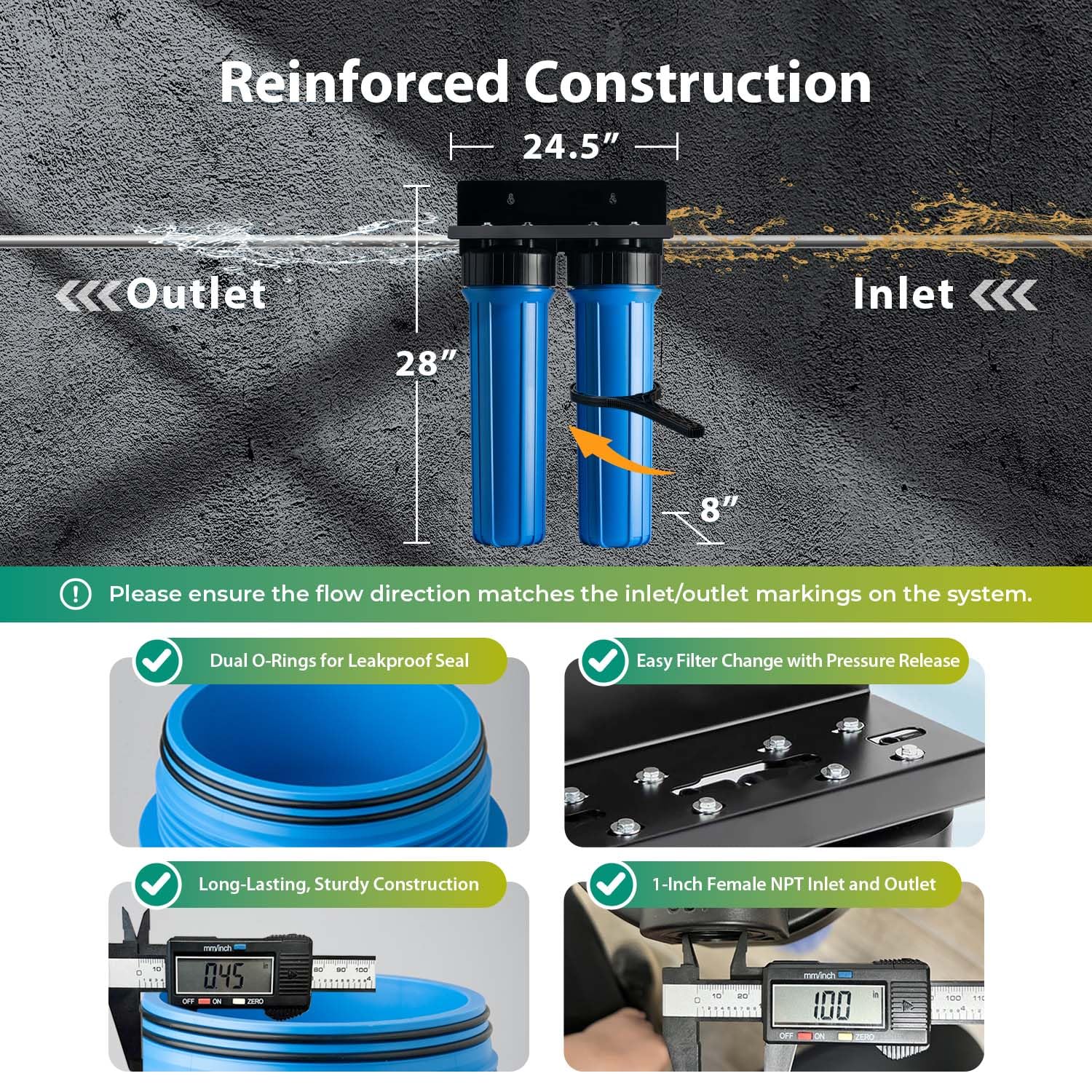 iSpring PFAS & Heavy Metal Whole House Water Filter System, Also Reduces Chlorine, Hydrogen Sulfide, Odor, Bad Taste, SGS-Tested Reducing up to 99% of PFAS, 1” Inlet/Outlet, Model: WGB22B-PFKS Effective PFAS Removal – The first-stage of this water filter whole house contains SGS-tested media to remove up to 99% of PFAS (Per- and Polyfluoroalkyl Substances), a rising concern in U.S. municipal water. Heavy Metal & Chemical Defense – The second-stage of this whole house water filtration system uses granular activated carbon and KDF media to effectively reduce chlorine, lead, mercury, pesticides, herbicides, hydrogen sulfide, odor, bad taste, and more. High Capacity – This whole house water filter system delivers strong water pressure and filters up to 150,000 gallons or lasts for 12 months, making it ideal for residential homes. DIY Installation & Maintenance – Designed with standard 1-inch NPT inlet and outlet ports, this home water filtration system easily integrates with most whole-house setups. A clear user manual and step-by-step video tutorials guide you through simple DIY installation and maintenance. Important Note – Unlike RO systems, our whole house water filters purify water while preserving essential minerals. For complete TDS removal, explore our iSpring Reverse Osmosis (RO) systems. Peace-of-Mind Customer Service – Register online to activate your 1-year manufacturer warranty and enjoy lifetime free tech support from our U.S.-based team. We stand behind every product—if you encounter any issues, contact us right away and we’ll be happy to help. Experience the iSpring Difference First Stage PFAS Removal Water Filter SGS-tested media removes up to 99% of PFAS, including PFOA and PFOS, from your water, ensuring safer water for your household. Activated carbon fiber reduces residual chlorine, VOCs, and other chemical contaminants for cleaner, fresher water. Second Stage Composite Water Filter Reduces chlorine, lead, mercury, hydrogen sulfide, heavy metals, herbicides, odors, and more for cleaner water. For households with high TDS levels (>300 ppm), pair this filter with a water softener such as the iSpring WCS45KG to maximize filtration efficiency and extend system life. Minimum Working Pressure 25 psi Maximum Working Pressure 80 psi Operating Temperature 40-100 ºF pH Range 6 – 9 DIY Installation Yes – comes with manual and step-by-step video guide Inlet / Outlet 1 inch Female NPT
