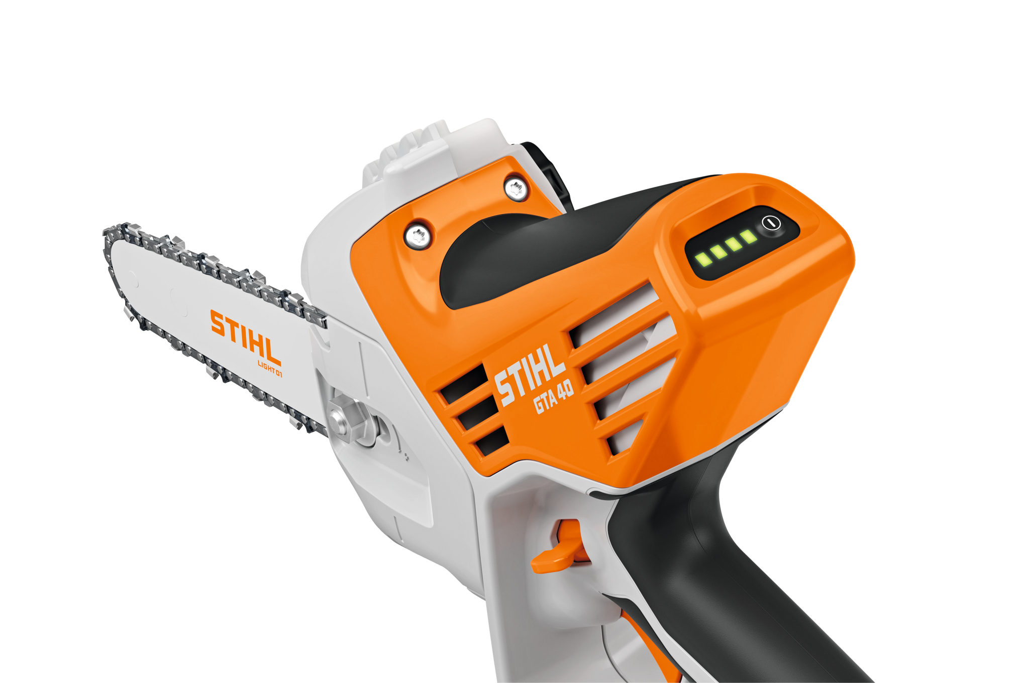 We are excited to introduce the new GTA 40! With 90% more power than the GTA 26, a longer guide bar, and over twice the cuts per charge, the GTA 40 is built to crush serious pruning jobs
