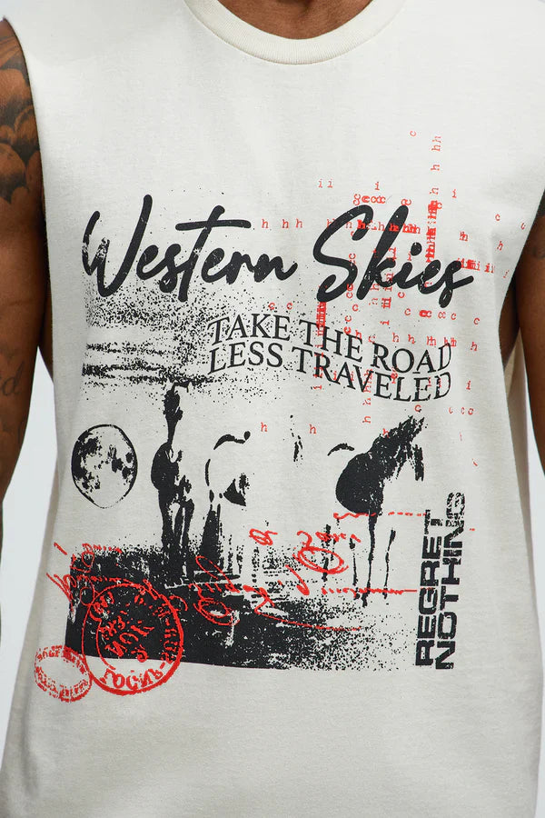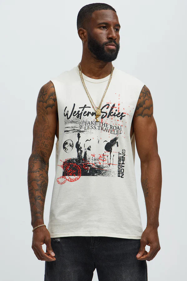 Western Skies Muscle Tee Natural Beach-Inspired Sleeveless T-Shirt for Men