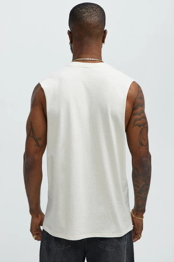 Channel relaxed coastal vibes with the Western Skies Muscle Tee. Crafted from soft, breathable 100% cotton, this sleeveless crew-neck tee features a beach-inspired screen print, making it perfect for warm days, casual outings, or layering. Each piece has its own unique character for an effortless, laid-back look.