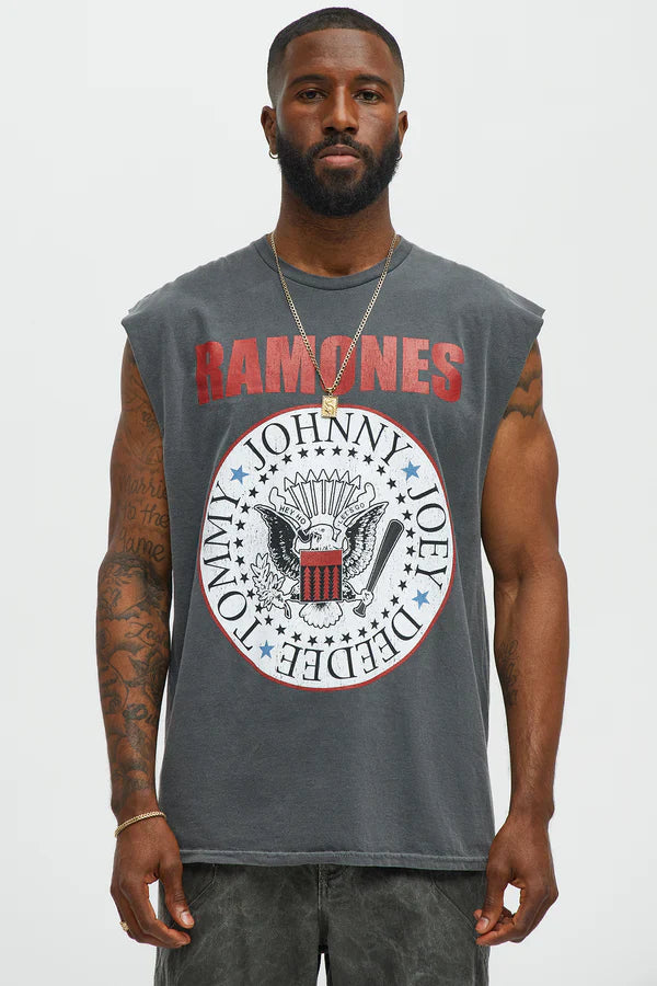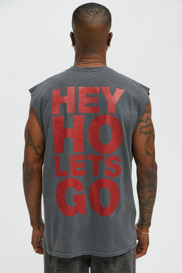 Show your love for classic rock with the Hey Ho Ramones Muscle Tank. This sleeveless grey tee features a bold screen print and a comfortable crewneck, crafted from 100% soft cotton. Perfect for concerts, casual outings, or layering for a rock-inspired look.